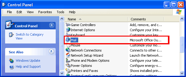 Change the view to "Classic View" and doubleclick on the folder "Mail"