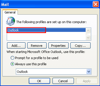 Remember this name of your Outlook profiles. You must note the name of your Outlook profile for the later registration
