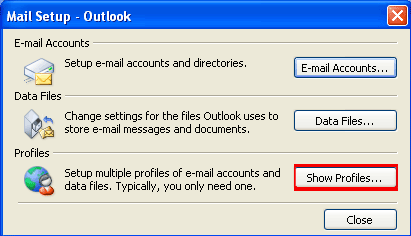 If you can not click on "Show Profiles", after you doubleclick on "Mail" in the "Control Panel" you have not Outlook 98/2000 installed or you forget to change the mode in Outlook from "Internet Mail Mode (IMO)" to "Corporate Workgroup (CW) Mode": How to change from IMO to CW mode?