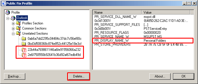 Public Fix Profile Wizard makes it possible to repair Outlook profiles in which abandoned entries occur.