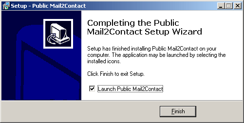 Contained are this help file, the file "readme.txt" (this contains necessary and also current information, which could not be taken now to the manual) as well as the installation program "Public Mail 2 Contact Setup.exe
