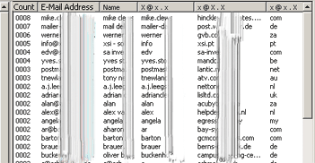 If you click on "import data", all E-Mail addresses from the existing e-mails are picked out and indicated in the editor. If several e-mails with the same E-Mail address are present, then the "number" is increased. The E-Mail address is not indicated several times nor created as contact several times. |