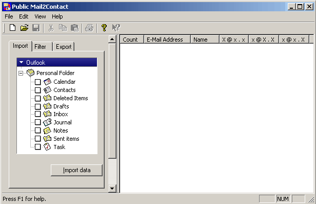 With the left mouse button you can select individual folders for the import of the email address. This selection can also be made for several PST files, folders or "Public Folders". The selection is not limited to an individual file. |