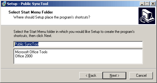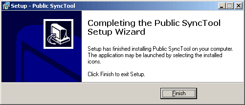 Included therein are these help files, the "readme.txt" (this may also contain current information which could not be included in the manual) as well as the "Public SyncTool Setup.exe" installation program.
