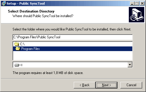 It is routinely installed into the directory "C:\Program Files\Public SyncTool".